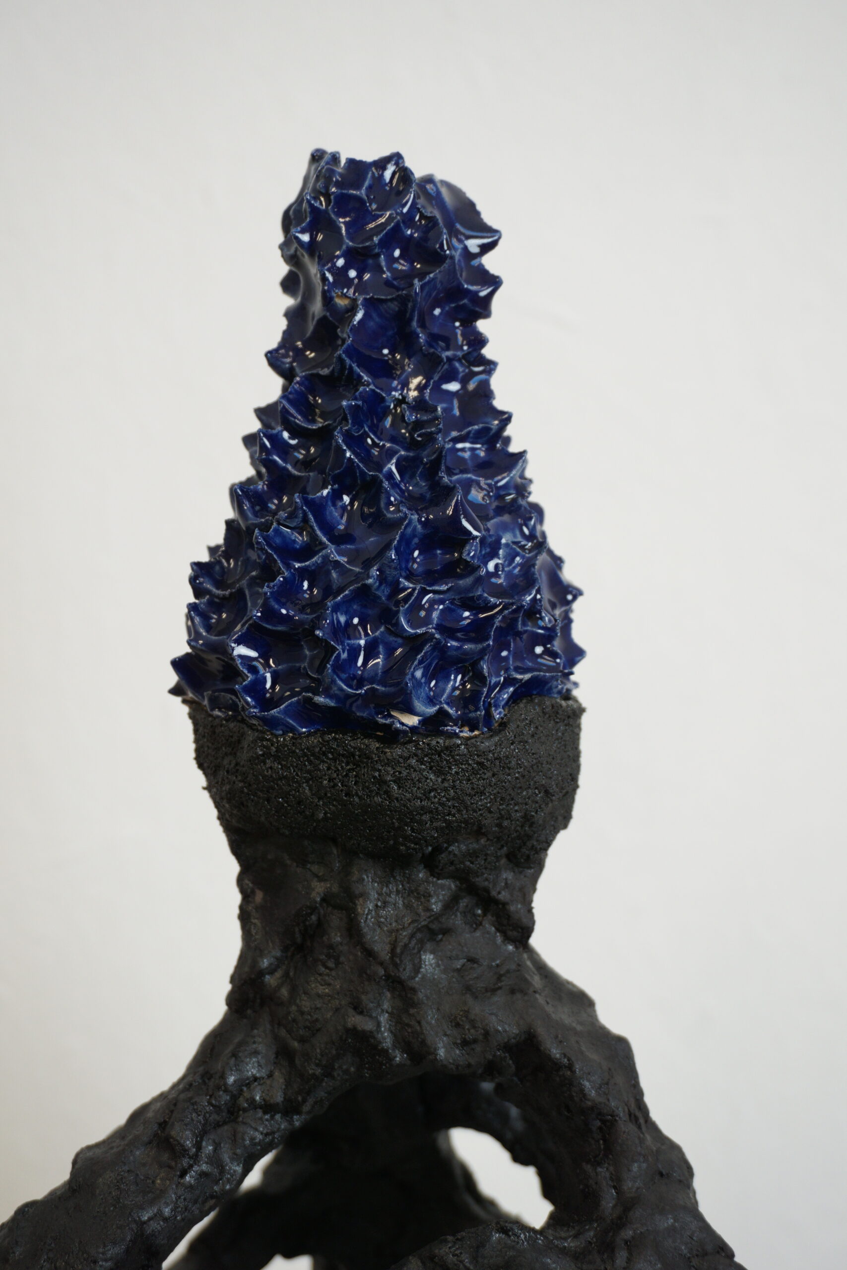 Engel 02 2025 Keramisch geconstrueerde ‘bloem’ met blauwe stekelige top.Afmeting +/- 0,3 x 0,3 x 0,4 meter